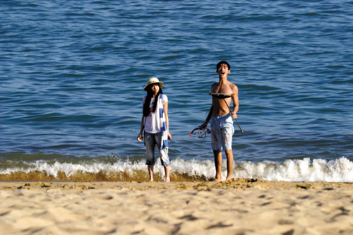 《流星雨》最新劇照的內容包括了眾人集體野炊、慕容云海為楚雨蕁潛海捕魚、端木磊在沙灘上與楚雨蕁對白,以及眾人一起打沙灘排球等多個場面,但效果卻被網友歸結為一個字———“土”。相比之下,韓劇《花樣男子》中李民浩赤裸上身在海灘飛奔的情景,卻讓網友普遍認為,他蓬松的卷發(fā)在湛藍的海水前飛舞的樣子極為性感。據《花樣男子》劇組工作人員透露,該場景中包括了男女主角的首場感情戲,是劇情中的關鍵部分,所以劇組專門前往海外進行拍攝。除此之外,澳門的威尼斯人(度假村)酒店也是該劇外景地之一。