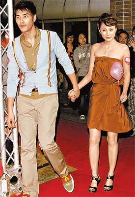 藍正龍(左)和緋聞女友劉心悠昨不避嫌牽手出席首映。