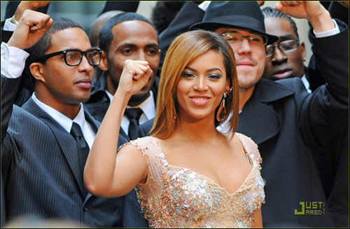 27歲的性感天后碧昂斯3月8日在紐約街頭身穿閃亮低胸性感禮服亮相,為自己的世界巡回演唱會拍攝特別版MTV,從照片中我們可以看出碧昂斯身后跟著無數(shù)西裝革履的男士們,我們很期待看到這個MV的精彩內(nèi)容,下面我們先看看照片吧。