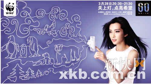內(nèi)地女星李冰冰近兩年除了成為國(guó)際一線品牌青睞的對(duì)象外,由于其形象健康,也受到環(huán)保組織的注意。日前,由世界自然基金會(huì)(簡(jiǎn)稱wwf)發(fā)起的 “EarthHour”活動(dòng),就看中了李冰冰的國(guó)際號(hào)召力,將她從《風(fēng)聲》的劇組里“借”了出來,于3月28日在北京鳥巢發(fā)起“熄燈一小時(shí)”活動(dòng)。該活動(dòng)一向具有廣泛的國(guó)際影響力,在澳大利亞更請(qǐng)到了好萊塢巨星妮可·基德曼擔(dān)任推廣大使。據(jù)悉在活動(dòng)當(dāng)晚,妮可·基德曼和李冰冰將分別出現(xiàn)在悉尼歌劇院和鳥巢中,并有機(jī)會(huì)用遠(yuǎn)程通話的方式響應(yīng)此次活動(dòng)。