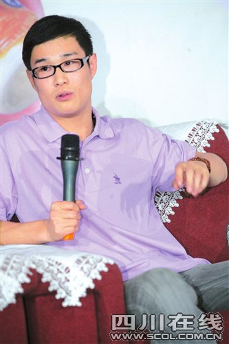 當書卷氣十足的“小沈陽”上臺向觀眾鞠躬時,現(xiàn)場立即爆發(fā)出熱烈掌聲。女主持首先教“小沈陽”學說幾句成都話“好巴適哦!“巴適得板!”“巴適得慘”!“巴適得憨!”僅教了兩次,“小沈陽”就一口氣用正宗四川話說出來,逗得現(xiàn)場觀眾和記者哄堂大笑。緊接著,女主持又讓“小沈陽”跟她現(xiàn)場學唱四川民歌《康定情歌》!靶∩蜿枴本挂浴岸宿D”的形式翻唱,現(xiàn)場又是一陣笑聲。