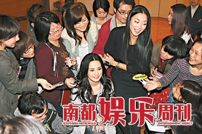 展貿(mào)廳里臨時隔開的后臺,早對明星見慣不怪的香港娛記圍攏在一起,為了等一下阿嬌過來接受采訪坐的一張椅子面朝哪邊、距離多遠,忽然爭吵起來。
