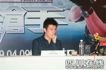 《神槍手》昨日新加坡舉行發(fā)布會(huì),冒死亮相的陳冠希坦言很害怕子彈恐嚇