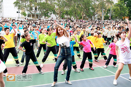 昨日(16日)一早,蔡依林特別前進(jìn)臺(tái)北市某小學(xué),帶領(lǐng)小朋友齊跳新歌《愈慢愈美麗》的新舞步。針對日前經(jīng)紀(jì)人透露蔡依林這幾年因?yàn)槊χぷ,身上帶有不少病痛,下半年可能?huì)讓她好好休息,她低調(diào)表示“一切配合公司安排”。