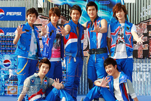 由中國(guó)成員韓庚領(lǐng)軍的超人氣男子組合Super junior-M出席某飲料簽約儀式,正式加入這個(gè)規(guī)模龐大的品牌家族。這支2008年4月在中國(guó)出道的韓國(guó)花美男組合目前已在中韓兩國(guó)都掛起了一陣颶風(fēng),這次發(fā)布會(huì)現(xiàn)場(chǎng)更是吸引了多達(dá)二百多位粉絲身著SJ的守護(hù)色寶藍(lán)色,早早在機(jī)場(chǎng)守候。大會(huì)安排了三十多名保安護(hù)駕護(hù)航,足以彰顯SJ-M的超高人氣。