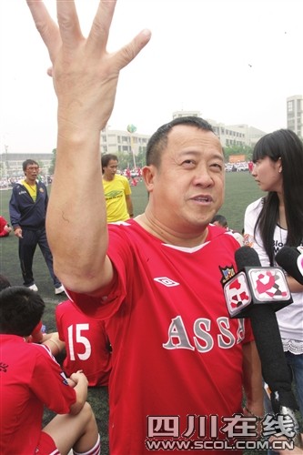香港明星足球隊(duì)和夢(mèng)舟明星足球隊(duì)是前日中午在什邡會(huì)合的。據(jù)了解,兩地明星從去年5·12大地震后,多次到四川災(zāi)區(qū)獻(xiàn)愛心,捐款捐物。半月前的一天,夢(mèng)舟明星足球隊(duì)隊(duì)長孫楠給老朋友譚詠麟打電話,希望在抗震救災(zāi)周年之際,策劃兩支足球隊(duì)到災(zāi)區(qū),用一場(chǎng)足球比賽加表演的形式,來鼓勵(lì)四川人民重建家園。譚詠麟一聽,非常興奮,立即組織香港明星足球隊(duì)來川。