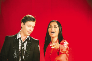 韋唯與維塔斯在錄音棚初次見面氣氛就相當(dāng)融洽,盡管兩人語言不通,但維塔斯施展的耍寶逗樂功夫讓韋唯忍俊不禁。兩人面對鏡頭進入狀態(tài)很快,尤其是在對唱時更加自然親近。記者 俞亮鑫