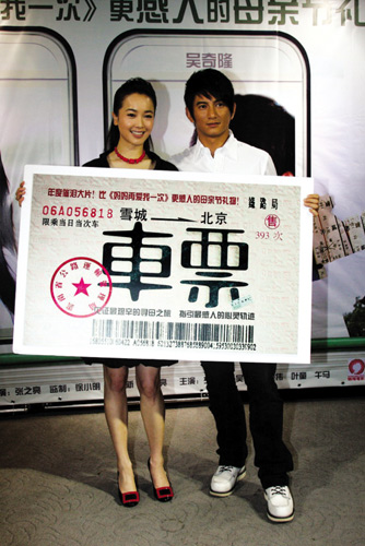 號稱2009年第一部華語親情片的電影《車票》定于今日登陸全國影院。昨日片方在北京召開發(fā)布會,導演張之亮攜主演左小青、吳奇隆亮相,為這部在母親節(jié)上映的影片宣傳造勢。