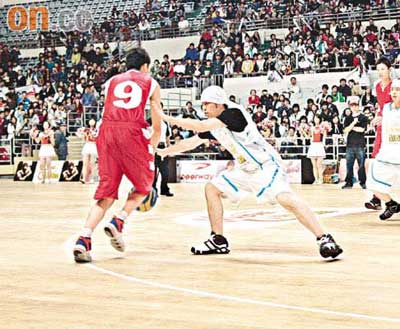 面對上海東方隊的小巨人,周杰倫打起來捉襟見肘,投籃屢屢不中,更是出現(xiàn)體力不支的現(xiàn)象。下半場,周杰倫要求改打他更擅長的三對三,果然他的表現(xiàn)脫胎換骨,手風(fēng)愈射愈順最后取得7分,帶領(lǐng)明星隊在20分鐘內(nèi)以36比32險勝對手。