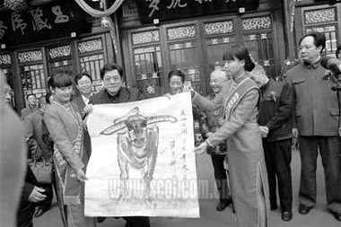 昨天上午10時(shí),成都陽(yáng)光燦爛,趙忠祥以“收藏家”的身份,應(yīng)四川省收藏家協(xié)會(huì)邀請(qǐng),興致勃勃地參加了 “四川夢(mèng)虎文化拍賣(mài)公司”的揭幕活動(dòng),這是西部首家進(jìn)行“拍品鑒定”的拍賣(mài)公司。有趣的是,作為資深主持人的趙忠祥,公開(kāi)參加這樣的揭幕活動(dòng),并未出任主持人,還“倒賠”了一幅自己的畫(huà)作《勁牛》。