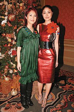 據(jù)香港媒體報道,楊千嬅前晚與陳慧琳(Kelly)、曾志偉、方力申、楊愛瑾、狄龍夫婦及特首曾蔭權(quán)等出席香港電影發(fā)展局主辦的“迎接奧運圣誕酒會”,二人分別穿上紅色及綠色的服飾登場,并排在一起時甚具圣誕氣氛。