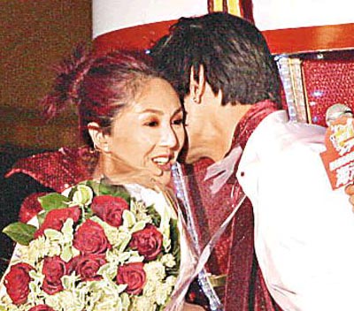 中新網(wǎng)12月26日電 據(jù)香港太陽報報道,楊千嬅、何韻詩與許志安等,前晚(12月24日)在尖沙咀廣東道舉行倒數(shù)派對,吸引逾萬市民圍觀!壓軸演出的千嬅,以一身紅彤彤的打扮搶鏡,大會安排一名高大俊男給她作“禮物”,令她興奮得哇哇大叫,還說:“Very Happy。ê荛_心。痹撁∧兴蜕硝r花及獻吻,但當?shù)孟Ψ揭延屑沂,?#23301;即拒絕“愛意”。談及新年愿望,她暗示希望找到新戀情:“想找一件跟我般配的衣服!”