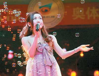 8日晚深夜10點(diǎn)50分,一直走性感路線的香港明星溫碧霞突然現(xiàn)身重慶某洗浴城演藝廳,為一大群身穿白色浴袍的客人獻(xiàn)唱。為了避免走光,身穿抹胸長(zhǎng)裙的她更在臺(tái)上大扯胸部的裙沿。