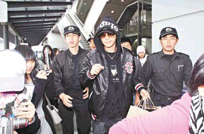 據(jù)香港太陽報報道,昨晨10時許小豬抵港,歌迷不怕寒冷天氣前往接機(jī),并舉起“亞洲舞王”紙牌迎接偶像,包著頭的小豬在助手陪同下出閘,歌迷即一擁而上將他圍住,唱片公司特別安排了4名保安開路,小豬此行只留港3日,但工作人員推著6大箱行李緊隨,問到小豬是否很疲倦?他笑著說:“OK啦!”由于昨日不是假期,小豬接過歌迷的禮物后,即緊張地說:“你們不用上學(xué)?請假了嗎?”歌迷沒有回答,但小豬仍表現(xiàn)親民,與歌迷打成一片,有講有笑。