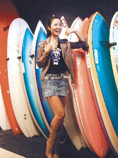 雖然無浪可沖,店里的器材可是從沖浪板到防寒衣一應(yīng)俱全,只不過前來友情贊助、完全不會(huì)沖浪的林心如卻抱怨地說:“怎么沒有比基尼可以挑?”