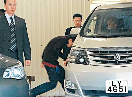 中新網(wǎng)2月27日電 陳冠希昨午2時(shí)許再由四季酒店出發(fā)到灣仔警察總部協(xié)助調(diào)查艷照事件。據(jù)香港媒體報(bào)道,十多名酒店保安在酒店停車場(chǎng)維持秩序,陳冠希快速步上保母車離開,八名保鑣則乘坐兩輛房車為他護(hù)航。