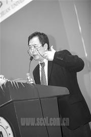 9點(diǎn)30分,閃光燈不停閃爍,張鐵林剛一出現(xiàn),歡呼聲、掌聲立即爆響。張鐵林身穿一套深色西裝,扎著領(lǐng)帶,戴著一副金邊眼鏡,地道的學(xué)者氣派。一進(jìn)會(huì)場(chǎng)就遭遇學(xué)生、媒體的圍堵。