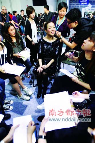 所有采訪完結后,鄭秀文正要離去,一個記者說想合影,鄭秀文立刻摟著她的肩膀合影,結果開了這個頭,現(xiàn)場幾乎所有記者都變成粉絲,一一要跟她合影。