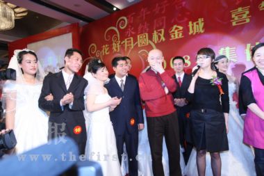 婚禮現(xiàn)場一直以浪漫的音樂做背景,彩帶飄揚,鮮花搖曳。新娘新郎們興奮地參加權(quán)金城為他們準(zhǔn)備的各項活動,他們的臉上始終洋溢著幸福的笑容。宋丹丹說:“平日在小品里經(jīng)常演農(nóng)民工,看到這些來自農(nóng)村的新人們覺得特別親。農(nóng)民工咋了,勞動最光榮!我們這次來就是要喚起全社會對農(nóng)民工的關(guān)愛,他們?yōu)槌鞘薪ㄔO(shè)做了很大貢獻,社會應(yīng)該為他們提供力所能及的幫助,解決他們的困難,讓他們生活得更幸福!