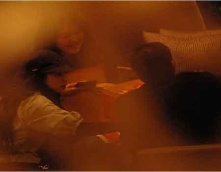 羅伯·明可夫朝靠窗處走去,此時(shí),回頭的李冰冰剛好讓記者看了個(gè)仔細(xì)。簡單的寒暄過后,羅伯·明可夫靠窗位置坐下。為了更仔細(xì)的觀察到二人當(dāng)時(shí)的情況,記者轉(zhuǎn)身上到二層找尋最佳位置取證拍照,在鏡頭中,起初李冰冰與旁邊的助理不時(shí)拿出一些照片和資料給羅伯·明可夫看,李冰冰還不時(shí)用手指著一些照片在解釋什么,雖然羅伯·明可夫似乎沒有太多肢體上的語言,但從李冰冰手舞足蹈的表現(xiàn)中,可以看出二人交流的很愉快(看來李冰冰的英語練得不錯(cuò))。交談的過程中,羅伯·明可夫不時(shí)手托著下巴認(rèn)真聆聽,不時(shí)談笑風(fēng)生,在隨后的時(shí)間里,雙方似乎達(dá)成了某些事宜,李冰冰與助理很認(rèn)真的說著某事情,而羅伯·明可夫則坐在一旁開始玩弄手機(jī),偶爾加入到李冰冰與助理的談話中。