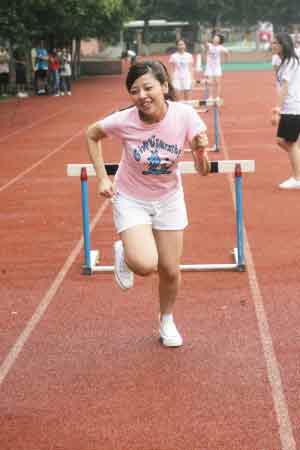 而接下來的跨欄更是讓人笑彎了腰,除了大牙和小蠻這兩個(gè)身高腿長的美眉能一跨而過,其他人都是慢吞吞地“走欄”——一腳跨過去,站定后另一腳才跨,特別是MeiMei,跑步的笨拙姿勢讓大家大笑不已。而到跳高時(shí),鬼鬼幾乎是連攀帶爬,姿勢十分狼狽,難得她躍過后還露出自信的微笑。而筱婕、小蠻和Apple都是雙手?jǐn)偲,企圖正面跳過去,可是每次都落得個(gè)肚子壓住橫竿的結(jié)局,被黑人揶揄為“狗爬式!