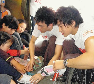 中新網(wǎng)5月22日電 何潤東、游鴻明、陳怡蓉及沈建宏等藝人,前天抵達成都后,即在紅十字會的安排下當起義工,冒著余震的危險深入地震災區(qū)彭州,為災區(qū)民眾送上急需的物品。