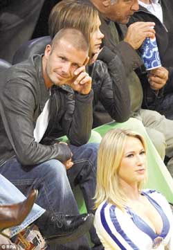 看湖人比賽“偷看”拉拉隊員 小貝氣壞辣妹(圖)