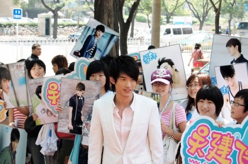 發(fā)布會當天,現(xiàn)場人潮攢動,眾多歌迷從外地專程趕來,癡心的小“飛鼠”們穿著統(tǒng)一的會服,高舉著各色的燈牌,一遍又一遍的呼喊著吳建飛的名字,焦急,緊張,期盼的氣氛幾乎讓在場的每個人手心都滲出了汗水,所有人都在期待著今天的主角吳建飛的出現(xiàn)。下午1點半,一輛加長的超豪華林肯轎車突然映入了大家的眼簾,伴隨著一陣陣的驚呼,轎車里走出了一身白色西裝的吳建飛,站在眾人面前的“新一代歌壇小天王”吳建飛今天化身成為了風度翩翩的貴公子,用他特有略帶羞澀的微笑向到場的所有朋友們致謝。
