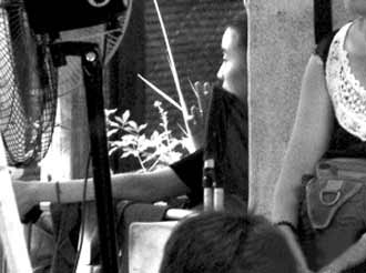 圖文:小宋佳難耐片場(chǎng)高溫 抽煙解心煩