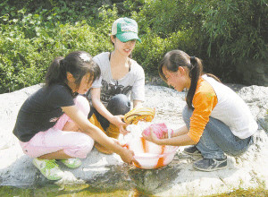 下午蔡依林又出發(fā)趕往朝天區(qū)羊木鎮(zhèn)白云村看望那里的受災(zāi)孩子。帳篷里,一名12歲的小男孩李糕引起了Jolin的注意,他小小年紀便包攬了家里的家務(wù),洗衣、做飯的同時還不忘努力學(xué)習(xí)。蔡依林讓小李糕拿出自己的語文課本,選他自己最喜歡的課文教她念,李糕選了一首唐詩,似模似樣當(dāng)起了老師。隨后,蔡依林又鉆進了一頂帳篷。再次出來時,身旁多了兩個女孩子,其中一個還拿著幾件臟衣服。一行人居然來到鄉(xiāng)間的小溪邊,蔡依林和兩個女孩子便在清澈的溪水中洗衣服。別看平時蔡依林嬌生慣養(yǎng),還留著漂亮的水晶指甲,可是做起家務(wù)活來一點不含糊,讓人刮目相看。不過,在搭建帳篷時,身材嬌小的她卻搞不定。一旁的工人教了她半天,這才終于搭起了一頂。