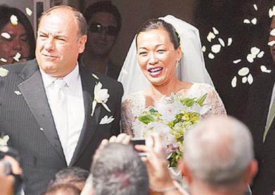 中新網(wǎng)9月2日電 熱門美劇《黑道家族》(Sopranos)男主角詹姆斯·甘朵菲尼(James Gandolfini)上周六梅開二度,在前模特兒黛柏拉·林(Deborah Lin)的家鄉(xiāng)夏威夷檀香山迎娶她。詹姆斯的8歲兒子當(dāng)他的伴郎,消息人士形容:“他們深情接吻,看起來非常幸福。”
