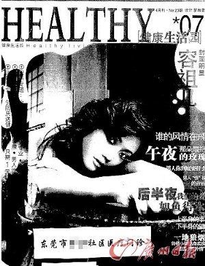 如果說容祖兒的肖像還有一些美感的話,那么鄭希怡的肖像就顯得有些荒唐了。在東莞市一家社區(qū)門診的名為《健康之聲》的醫(yī)療宣傳冊子上,盡管鄭希怡衣著端莊,但她的肖像旁邊的標(biāo)題赫然寫著“夫妻必會的3個性游戲”、“老男少女之戀”等標(biāo)題。而在一份醫(yī)療廣告冊子的插頁里,一向走清純路線的女星林志玲則笑靨如花地站在那里,旁邊卻是某診所無痛人流術(shù)的廣告。