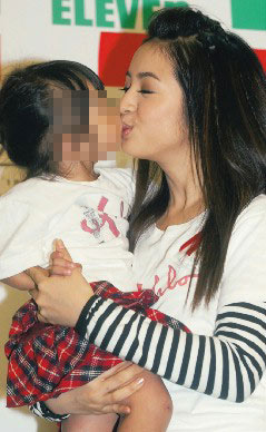 林依晨(右)昨天為關(guān)愛之家募款,親吻艾滋寶寶,希望大家別歧視艾滋病患。