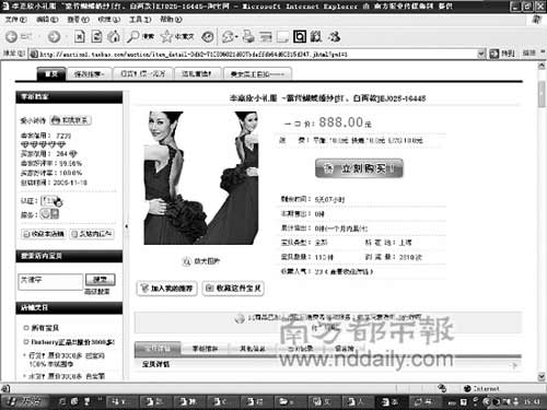 日前,記者在淘寶網(wǎng)上發(fā)現(xiàn)有店鋪“一口價888元”叫賣“”李嘉欣小禮服———露背蝴蝶婚紗“,并在頁面上打出廣告語稱”本店長久經(jīng)營上千款明星婚紗、晚裝禮服,并同多家藝人經(jīng)紀公司長期合作!罢f得有模有樣,并將李嘉欣大婚身著該件紅色禮服的圖片放在頁首處,相當顯眼。