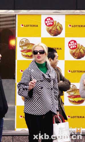 在保鏢和助理的陪同下,布蘭妮花了一個(gè)上午的時(shí)間,在東京著名的原宿(Harajuku)購物大血拼。她身穿一件塔形的黑白格上衣,也因此顯得腹部高隆,很是令人生疑。也許她自認(rèn)在東京并無人認(rèn)識(shí),于是暢快地吸著煙,還先后去了某家以“盜版”知名品牌出名的平價(jià)服裝店以及日式的麥當(dāng)勞—— LOTTERIA快餐店。此行,也許讓這位27歲的瘋狂女王再次暢快地玩了一回。