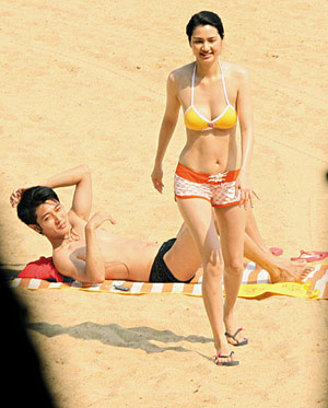 兩人被拍在沙灘一齊曬太陽