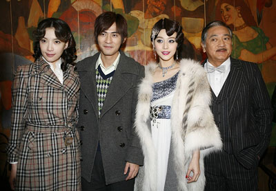 范冰冰擔(dān)任制片人的第二部電視劇《金大班的最后一夜》正在上海熱拍,劇組昨日在楊浦區(qū)的一棟洋房?jī)?nèi)組織媒體探班,范冰冰偕男主角周渝民、方中信、黃少祺、秦沛等以劇中造型出現(xiàn)在媒體面前。在采訪中,老板兼演員的范冰冰以及首次出演年代戲的仔仔周渝民成為媒體關(guān)注的焦點(diǎn),兩人表現(xiàn)出“相見恨晚”的樣子,難怪仔仔最后被問到是否會(huì)與大S復(fù)和的消息,仔仔很肯定地說:“沒有”。
