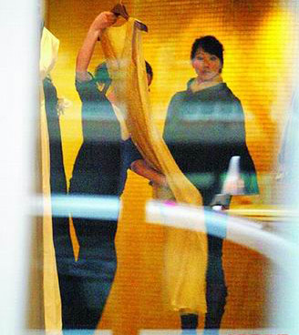 據臺灣《蘋果日報》報道,7日記者目擊,胡婷婷結束代言活動后,先和造型師劉培華到中山北路的“LANVIN”挑禮服,但待不到半小時,又到“JAMEI CHEN”服飾店,她拉著劉培華當評審團,換上1套又1套禮服,只見店員拿著白紗忙進忙出,無論是可愛燈籠裙小洋裝或性感亮片洋裝,她通通試穿拍照留念,最后更對一款典雅的希臘式長襬深V剪裁的白紗情有獨鐘,要店員拿在手里讓她仔細端詳。