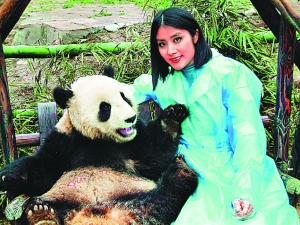 陳慧琳日前到四川探訪大熊貓,還現(xiàn)場(chǎng)唱了《北極雪》給它們聽。當(dāng)日她首次與1歲半的熊貓“華龍”和半歲多的熊貓女“發(fā)發(fā)”見面,“華龍”與陳慧琳十分老友,一邊吃紅蘿卜,一邊還將腳擱在陳慧琳的大腿上。至于“發(fā)發(fā)”這個(gè)名字,更是由陳慧琳改的,“叫‘發(fā)發(fā)’,因?yàn)樗?月8日出世,希望這名字可以為中國(guó)帶來好運(yùn),發(fā)發(fā)達(dá)達(dá)。”