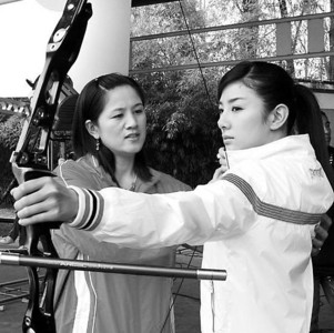 黃奕在劇中扮演中國(guó)射箭運(yùn)動(dòng)員田會(huì)會(huì),她在奧運(yùn)會(huì)上的主要對(duì)手就是容祖兒扮演的韓國(guó)射箭高手申真依,而兩人的父親也是一對(duì)宿敵。黃奕表示,在拍攝這部電視劇之前,她對(duì)射箭一竅不通,為此她專門(mén)向北京奧運(yùn)會(huì)射箭冠軍張娟娟“拜師”,并邀請(qǐng)她在劇中也客串自己的射箭教練。拍攝前,張娟娟專門(mén)對(duì)黃奕進(jìn)行了三天的封閉訓(xùn)練,“每天我都要用重達(dá)20磅的弓箭練習(xí)拉弓至少100次,一開(kāi)始根本拉不滿,于是就想換皮筋,以為裝裝樣子就行了,沒(méi)想到被教練一通狂批,然后只能咬牙硬著頭皮練下去。 ”正所謂嚴(yán)師出高徒,正是張娟娟的嚴(yán)格要求才讓黃奕擁有了熒屏上張弓搭箭的颯爽英姿。