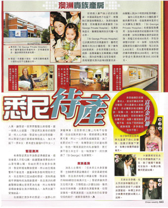 黎姿選擇的私人醫(yī)院是“St George Private Hospital”,在澳大利亞享負(fù)盛名,醫(yī)療設(shè)備與保安均屬一流水準(zhǔn)。這家醫(yī)院離悉尼機(jī)場只有20分鐘路程,擁有多間獨(dú)立的私人病房,由專業(yè)醫(yī)生及專職護(hù)士照顧病人,房內(nèi)設(shè)有獨(dú)立浴室及電視,每間嬰兒房內(nèi)設(shè)有8張嬰兒床,由醫(yī)護(hù)人員24小時提供貼身照顧。據(jù)保守估計,黎姿若生下孩子約需30萬港元。 (阿文)