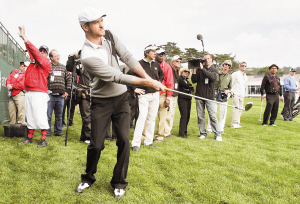 昨日,圓石灘配對賽賽前一天的名人挑戰(zhàn)賽在美國圓石灘球場舉行,卡梅隆·迪亞茲的前男友、美國歌手賈斯汀現(xiàn)場大獻球技。當(dāng)日賈斯汀似乎成績不錯,擊球進洞后,喜劇演員雷·羅馬諾還上前與他擊掌表示祝賀。比賽休息時間,賈斯丁又向出演過《冒牌上帝》、《陽光小美女》等片的男星格雷戈·金尼爾大獻殷勤,不斷為格雷戈按摩肩膀。