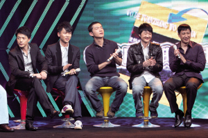 由康洪雷執(zhí)導(dǎo)、《士兵突擊》原班人馬打造的新劇《我的團(tuán)長(zhǎng)我的團(tuán)》將于3月2日在江蘇衛(wèi)視進(jìn)行全國(guó)首播。昨日,該劇在南京舉行首播式,康洪雷帶著段奕宏、邢佳棟、張國(guó)強(qiáng)、劉威葳等演員集體亮相。面對(duì)近百家媒體的追訪,康洪雷首次坦露了該劇拍攝時(shí)遭遇事故時(shí)的慘狀,還給大家揭秘道:“會(huì)看哭所有觀眾的,《我的團(tuán)》全是英雄,最后跟日本人拼得只剩下兩個(gè)人了。”說(shuō)到動(dòng)情處,現(xiàn)場(chǎng)男演員流下了眼淚。串場(chǎng)的魔術(shù)紅人劉謙,則表演了三個(gè)小魔術(shù),輕松賺走20萬(wàn)。