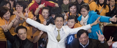 華仔天地”內地首個分會——上!叭A仔天地” 影音文化發(fā)展促進會成立大典昨日在上海東方藝術中心舉行,“大家長”劉德華乘坐“Andy World Club”巴士亮相與FANS互動,現(xiàn)場高潮迭起。被FANS親切稱為老大的他變起魔術像模像樣,戲言“干脆我以后去當魔術師吧”。在接受采訪時,劉德華還透露自己確實曾跟寶島魔術師劉謙學藝,有望于一年后與周杰倫合作一部“魔術”電影。對于日前盛傳他將以與阿嬌同拍電影的方式支持晚輩復出一事,劉德華表示自己的確會支持阿嬌復出,但目前還沒有實際的計劃。