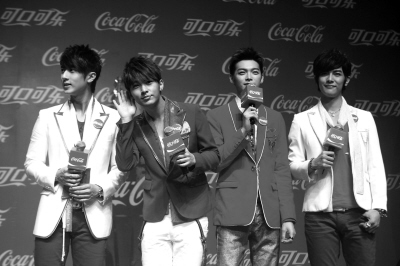 作為目前最受歡迎的青春偶像組合,“飛輪海”4位帥哥成員吳尊、炎亞綸、汪東城和辰亦儒齊集上海,推出今年可口可樂全新廣告。由于早有“飛輪!背蓡T不和的傳聞,吳尊和“大哥”汪東城在發(fā)布會(huì)上更是“明爭(zhēng)暗斗”,但記者一提到前輩F4,四人均立刻不屑道,“他們只是機(jī)遇比較好”。