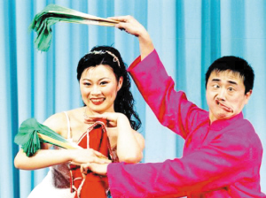 作為趙本山弟子中唯一一個(gè)從小學(xué)習(xí)二人轉(zhuǎn)的專業(yè)演員,閆光明不僅嗓子好、武功好,戲路也寬,在“首屆趙本山杯二人轉(zhuǎn)大獎(jiǎng)賽”中曾獲表演銀獎(jiǎng)。閆光明非?炭啵m然年齡不小了,但現(xiàn)在還是遼寧大學(xué)本山藝術(shù)學(xué)院民族藝術(shù)表演專業(yè)的大四學(xué)生。去年的全國(guó)大學(xué)生藝術(shù)節(jié)上,閆光明和妻子趙海燕以一段新編二人轉(zhuǎn)《梁山伯與祝英臺(tái)》獲得一等獎(jiǎng)。能有今天的成績(jī),閆光明自己也“沒想到”:“我生在二人轉(zhuǎn)世家,能有今天的成績(jī)說明這么多年的努力沒白費(fèi)!彼膊煌兄x師傅趙本山,“師傅讓二人轉(zhuǎn)越來越紅火,我得繼續(xù)努力,把我熱愛的民間藝術(shù)發(fā)揚(yáng)光大!蔽枧_(tái)上擅長(zhǎng)模仿趙本山的閆光明說,“我們對(duì)天津觀眾很熟悉,因?yàn)樘旖蛴袆⒗细笪枧_(tái),我認(rèn)識(shí)了很多天津朋友。這次來天津演出,希望大家一樣支持我!