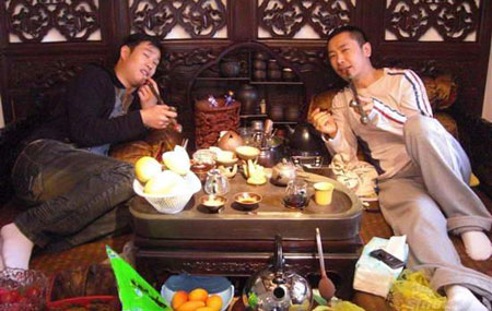 前段時(shí)間,有媒體曝光了一組小沈陽與哈爾濱好兄弟姜鵬的親密合影照,兩人臉貼臉、肢體似曖昧。姜鵬解釋稱,這是小沈陽去年生日的合影。近日,又一組有關(guān)姜鵬和小沈陽的合影被曝光,二人在一間仿古的老房子土炕上,圍著圓桌半躺著,手里拿著大煙袋,擺出休閑自在之態(tài)。