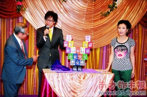 正在旁邊的錄影棚拍攝《五味人生》的郭晉安也跑過來湊熱鬧,曾在《東方之珠》中和阿姐飾演過母子的他一入場,即單膝下跪給阿姐斟茶,嚇得阿姐趕忙扶起。郭晉安搞笑道:“祝阿爸阿媽開開心心。哎喲,家英爸已經(jīng)有孫子了(指郭晉安的兒子)!敝車寺勓孕Φ挂黄。
