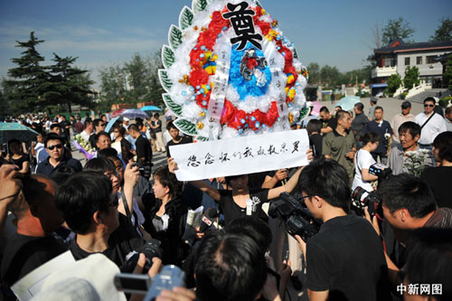 郎永淳在宣布告別廳關閉后,向四周的群眾分別鞠躬,他感謝社會各界人士對羅京的懷念。他解釋說,因為北京的風俗及家屬的意愿,12時之前一定要結(jié)束追悼會。