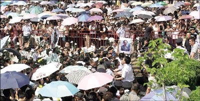 央視臺(tái)長(zhǎng)焦利、前任臺(tái)長(zhǎng)楊偉光,崔永元、水均益、趙忠祥、白巖松、張泉靈、邢質(zhì)斌、張宏民、李瑞英、董卿、王小丫等央視主持人均著黑衣現(xiàn)身,表情凝重。此外,蔡明、毛寧、濮存昕等演藝圈明星也來(lái)到現(xiàn)場(chǎng)。